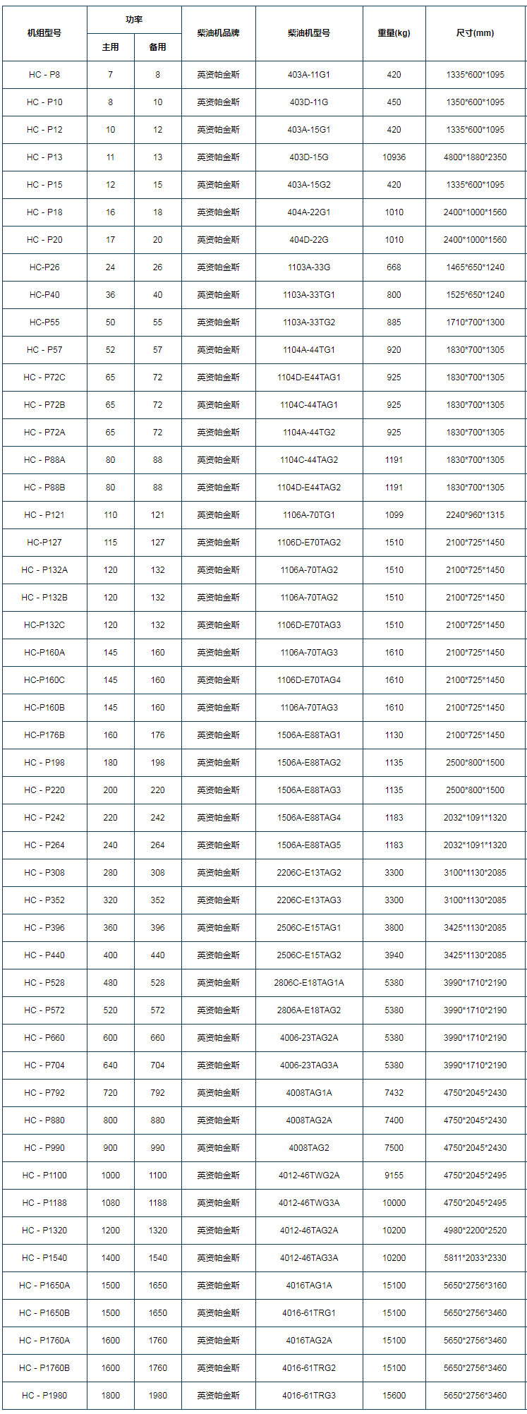 我公司生产的帕金斯柴油发电机组选用英国珀金斯Perkins柴油发动机来成套。我公司具有几十年专业生产perkins柴油发电机组生产经验,所生产的珀金斯系列柴油发电机组具有体积小巧、重量轻、动力强劲、节能环保、可靠性***和维护简便等***点,可以满足不同客户的需求。